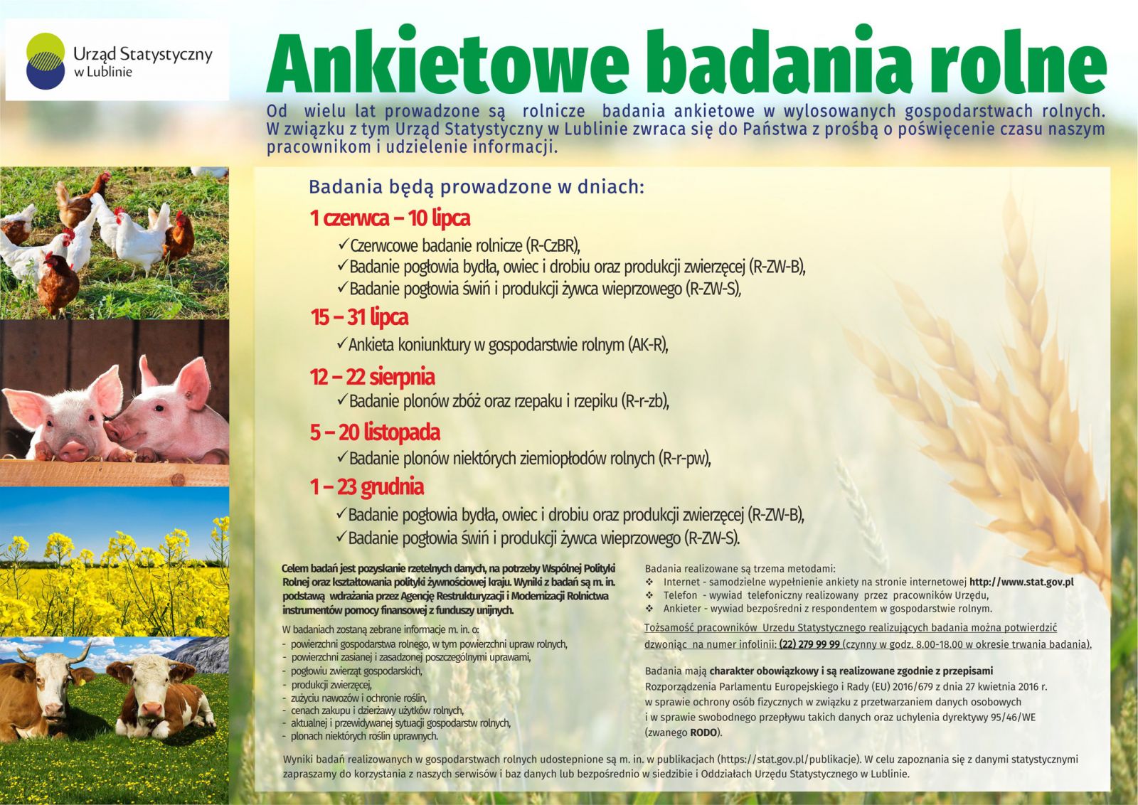 Zgodnie z Programem Badań Statystycznych Statystyki Publicznej na rok 2019 Główny Urząd Statystyczny realizuje badania rolnicze w wylosowanych gospodarstwach rolnych na terenie całego kraju.