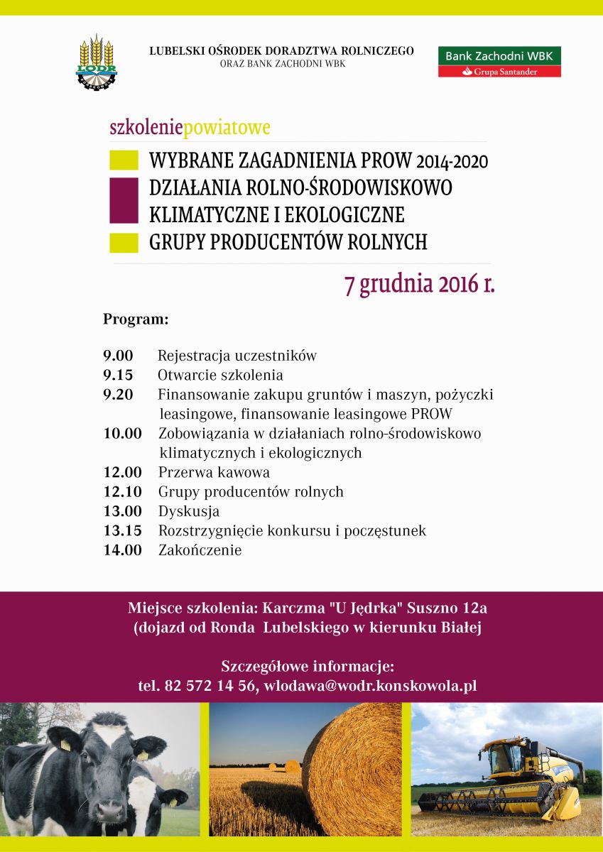 Zespół Doradztwa Rolniczego we Włodawie zaprasza na szkolenie.